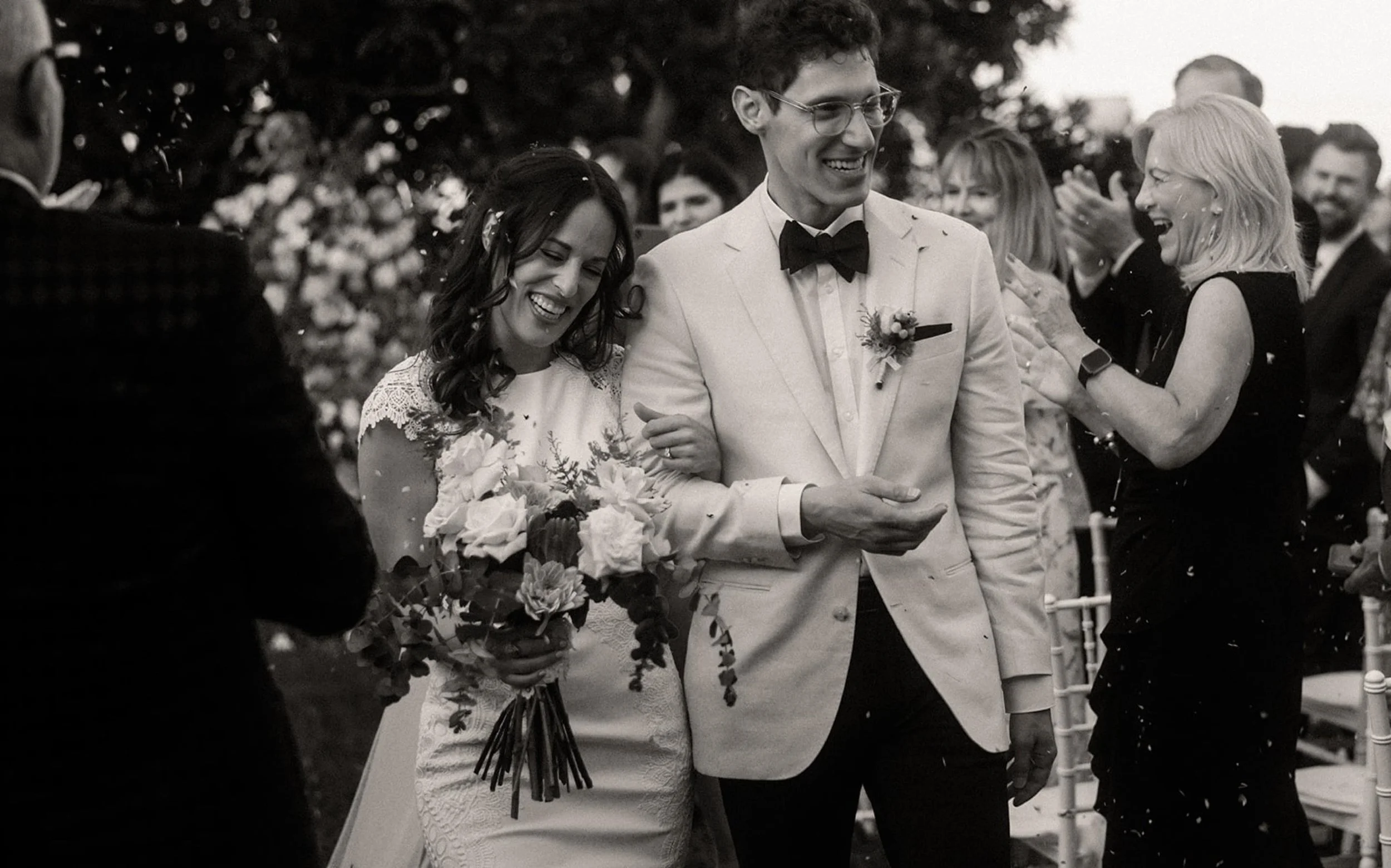 The wedding day fell on Rosh Hashanah, the Jewish New Year. During this holiday, it is customary to dip apple slices in honey and eat them to symbolize the hope for a sweet and prosperous new year, so to incorporate this tradition into their wedding, they handed out sliced apples and honey to each guest as they arrived at the ceremony along with a small envelope with their name on it, which they were asked to hold onto. During the ceremony, the bride’s father who was officiating invited every guest to dip their apples in the honey and eat them as he gave a blessing for a good and sweet year ahead. He then invited each guest to open their envelopes. Inside were personal, hand-written notes from the couple letting each person know the role they played in their life and their marriage, the ways they were inspired by them, and their gratitude for their presence. It was an incredibly moving moment where every guest, individually and collectively. felt deeply appreciated, loved, and seen.